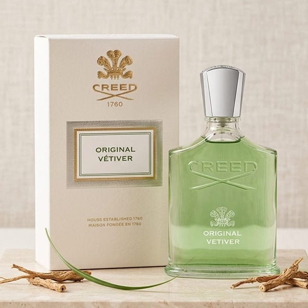 Creed Original Vetiver Fragrance In A Light Green Bottle With A Silver Cap