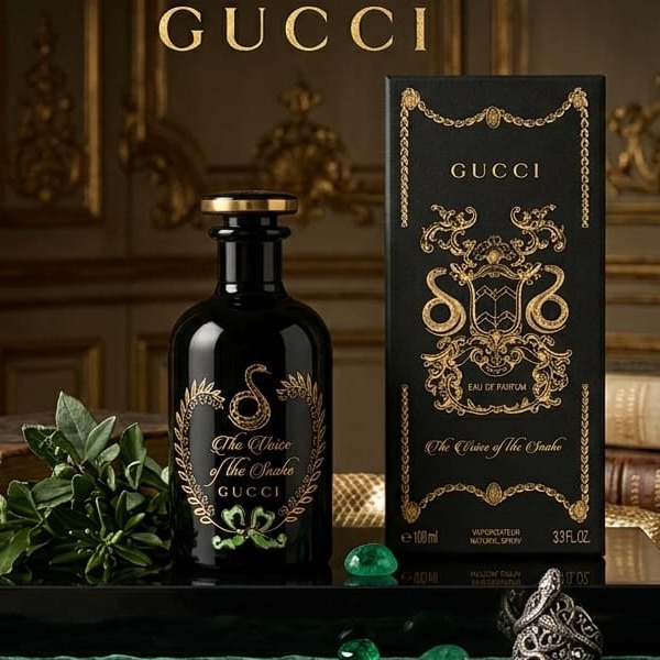 Gucci The Voice Of The Snake Perfume In a Black Bottle With Gold Detailing